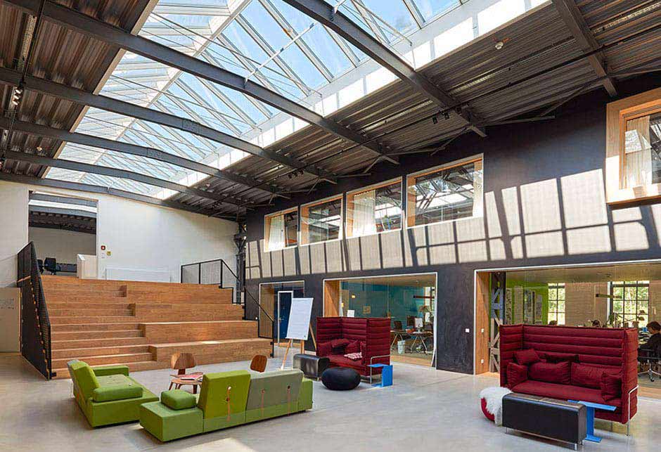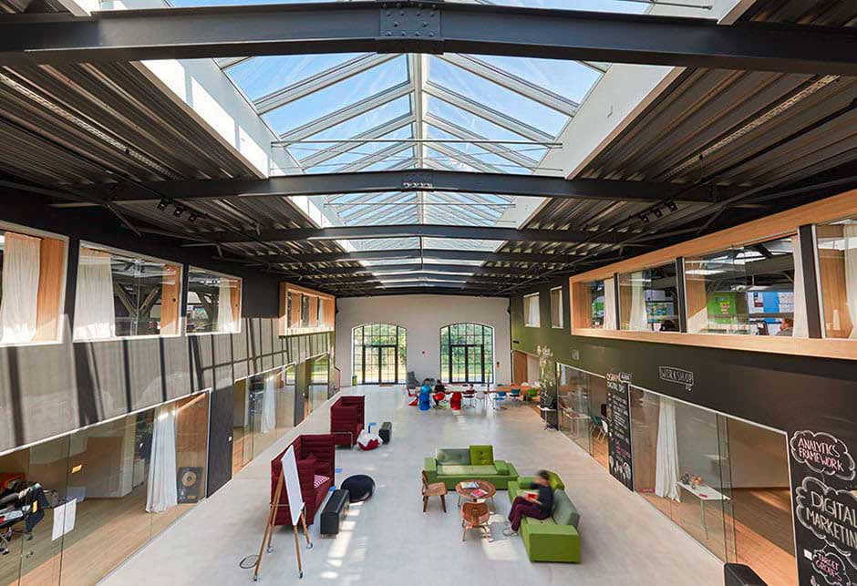 Modern open plan offices in a historic former railway building