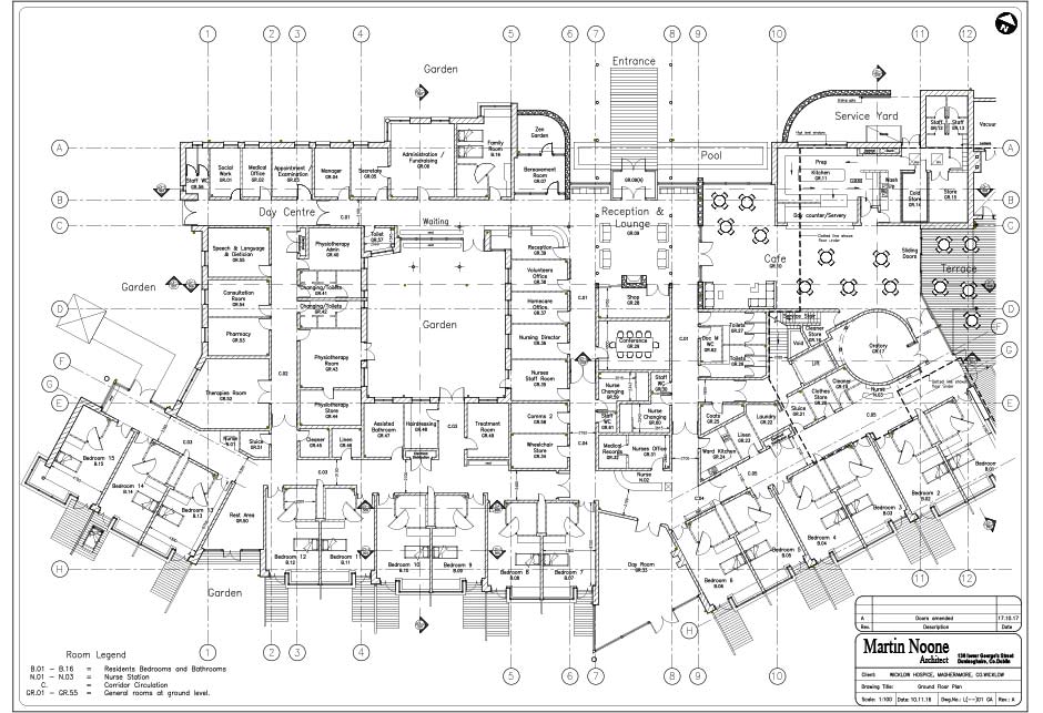 VELUX Modular Skylights were identified by Martin Noone Architects as providing the most appropriate rooflight system for the Wicklow Hospice project, one which would maximise natural daylight, and create an ambience conducive to the well-being of those people living and working there. The ease with which the operable skylights could be opened and closed by both patients and staff to ensure that spaces were well-ventilated and thermally comfortable was a key consideration in the design. VELUX Commercial worked closely with the architect to configure the VELUX skylights to provide a tailored solution for the hospice.