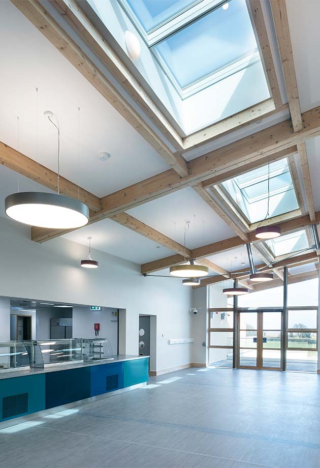 - The VELUX INTEGRA® control system was installed where localised control was required, and smoke-venting modules were incorporated, where necessary, to fulfil the requirements of the Fire Strategy